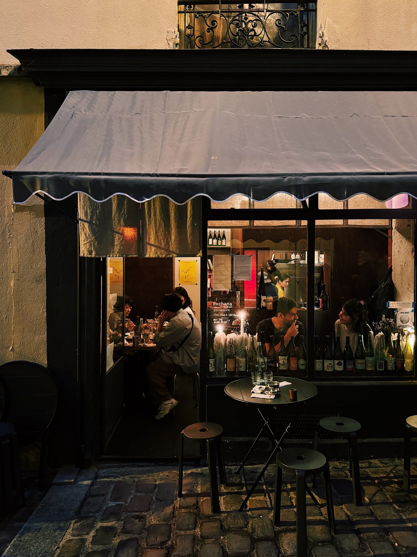 CD : I’d like to end on a positive note, though. One advantage of this sea of fine is how much more individual and unique restaurants stand out. Someplace like Pochana (12m², 12 seats, 1 chef, 1 somm, natural wines and homey Thaï food) seems so much more special in comparison to the one millionth basic French neo-bistro that I’ve been to. To me, Pochana is the perfect example of what a good restaurant should be: a distinct point of view; a clear message (as stated on their Instagram “Natural wine and Thai-ish dishes”, and that is exactly what you get); a short tasty menu (menus are often too long!!); an equally short but equally tasty wine list (due to the size of the restaurant they can only stock a certain amount of wine at a time but working within this limited framework works to their advantage, they’re curating instead of inundating); a good playlist; an affable server (Rémy, the somm and co-owner with his wife May, who’s in the kitchen); dimmed lighting (lighting is SO SO SO IMPORTANT in restaurants and is so often too bright or too white); and of course vibes for days (while a concept is easy to replicate, vibes are inexplicable and are the equivalent of a magic potion, it’s only when all elements are mixed together in the correct unmeasurable amounts that you achieve PEAK ambiance).